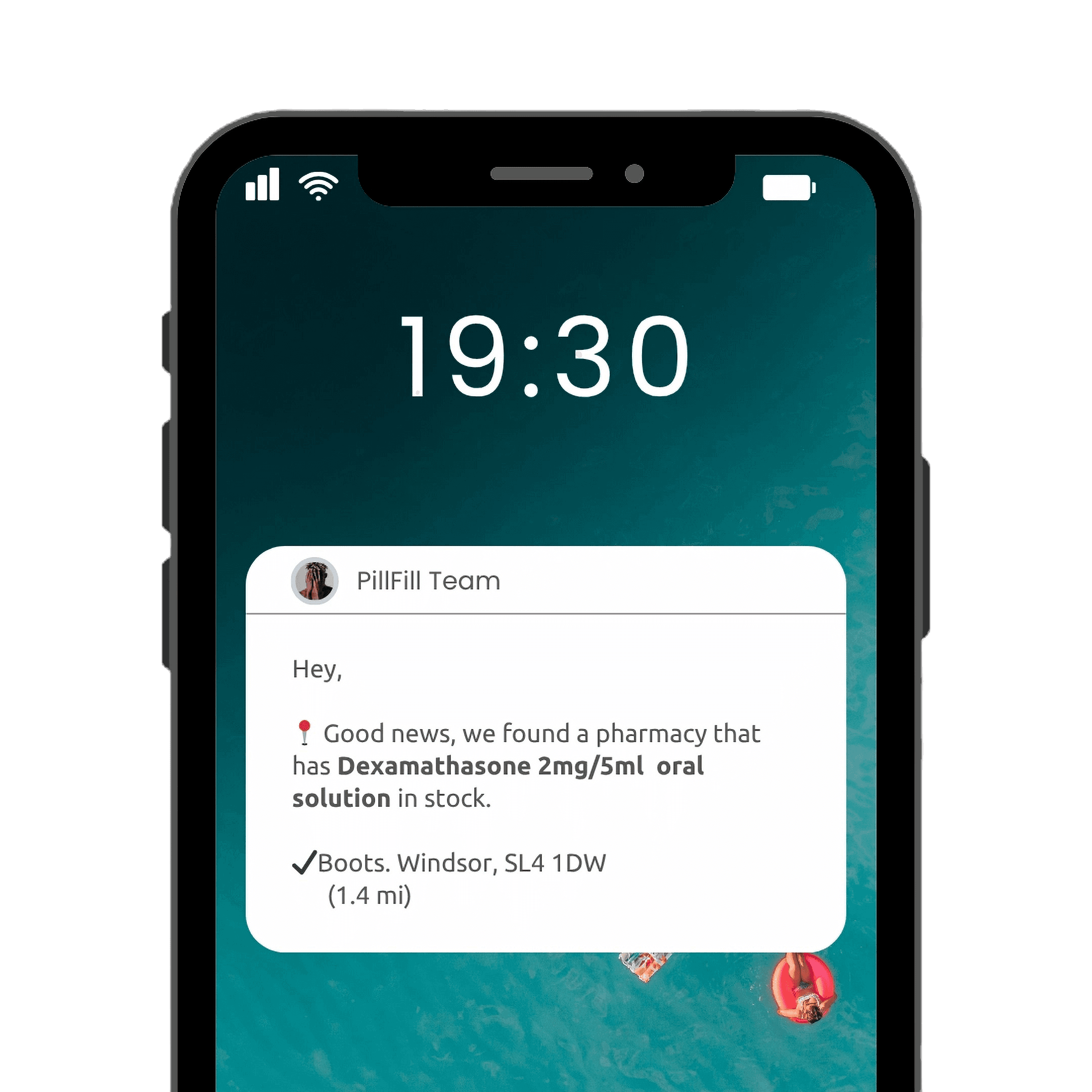 You get an email with a confirmed result - which pharmacy has it, what alternatives exist and what to do next.